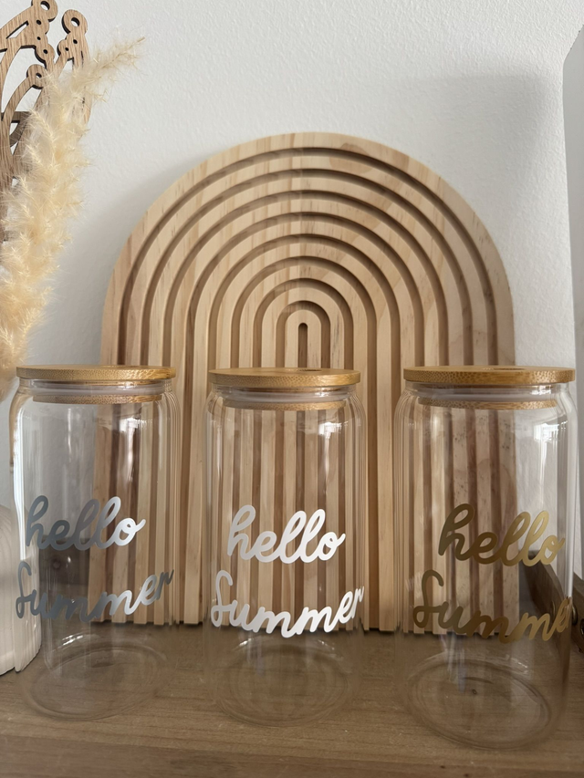 Die Namensbeschriftung besteht aus langlebiger Vinylfolie und wird sorgfältig von Hand aufgebracht, sodass jedes Trinkglas ein echtes Unikat ist.
